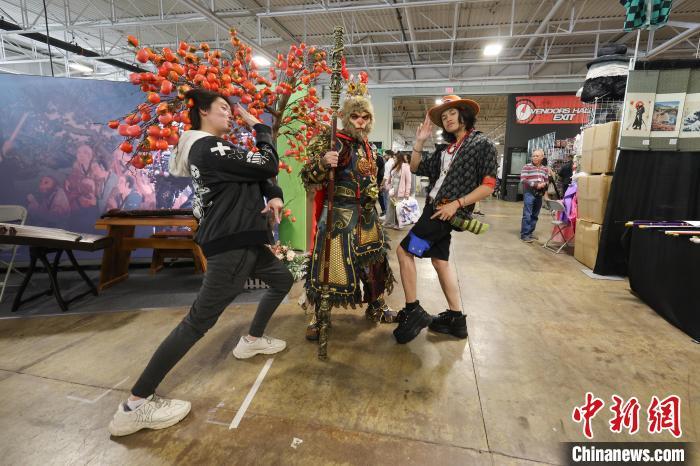 當(dāng)?shù)貢r間5月25日,加拿大多倫多,在北美動漫節(jié)上,一位動漫coser(角色扮演者)以中國國產(chǎn)游戲《黑神話:悟空》的悟空形象現(xiàn)身,吸引動漫迷合影?!≈行律缬浾?余瑞冬 攝