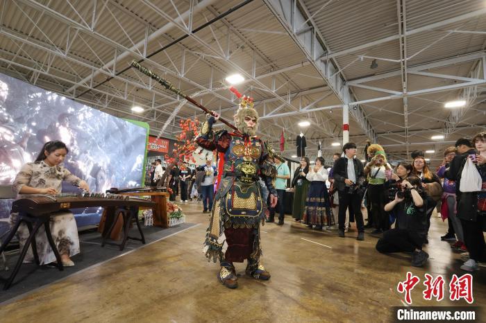 當(dāng)?shù)貢r間5月25日,加拿大多倫多,在北美動漫節(jié)上,一位動漫coser(角色扮演者)在古箏伴奏下,以中國國產(chǎn)游戲《黑神話:悟空》的悟空形象現(xiàn)身,吸引大批動漫迷圍觀?!≈行律缬浾?余瑞冬 攝