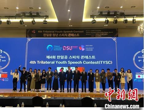 5月23日,第四屆中日韓青年演講比賽在韓國釜山舉行。圖為獲獎?wù)吆嫌?。中日韓合作秘書處 供圖