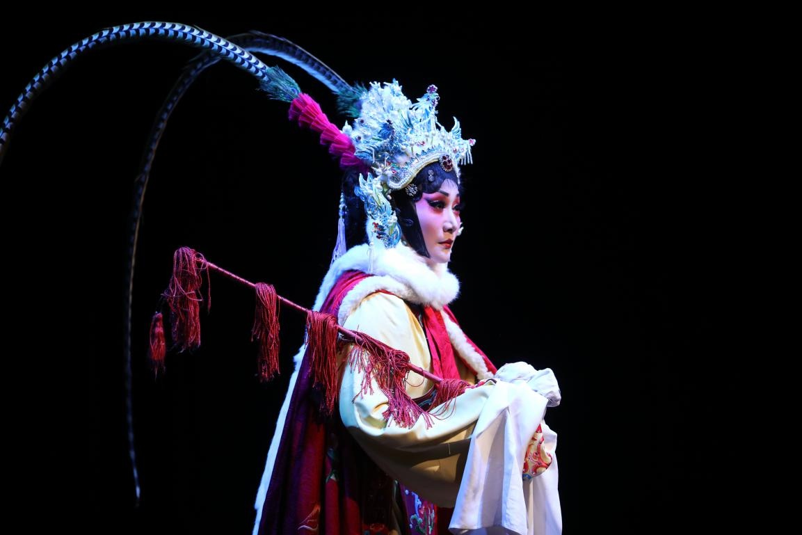 中國戲劇梅花獎獲得者惠敏莉身著華美戲服,與一眾易俗社優(yōu)秀演員,用時(shí)而鏗鏘有力、時(shí)而婉轉(zhuǎn)悠揚(yáng)的唱腔、細(xì)膩的表演,飽滿立體的詮釋出中國傳奇女性王昭君的大愛情懷。