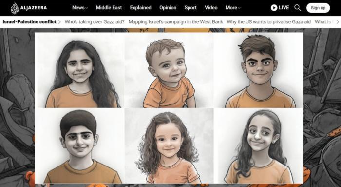 部分加沙遇難孩子的畫像。圖/半島電視臺
