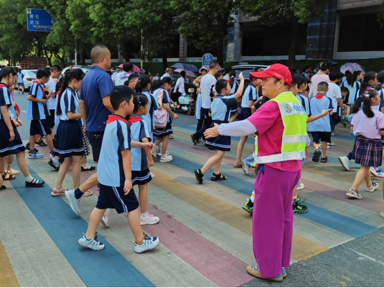 從2019年開始,作為志愿者的宋慶莉,每天穿梭于車流之間,守護上下學孩子安全,已有6個年頭。學生、家長親切地稱呼69歲的宋慶莉“馬路奶奶”,在她的帶動下,越來越多的志愿者家長加入護學隊伍。