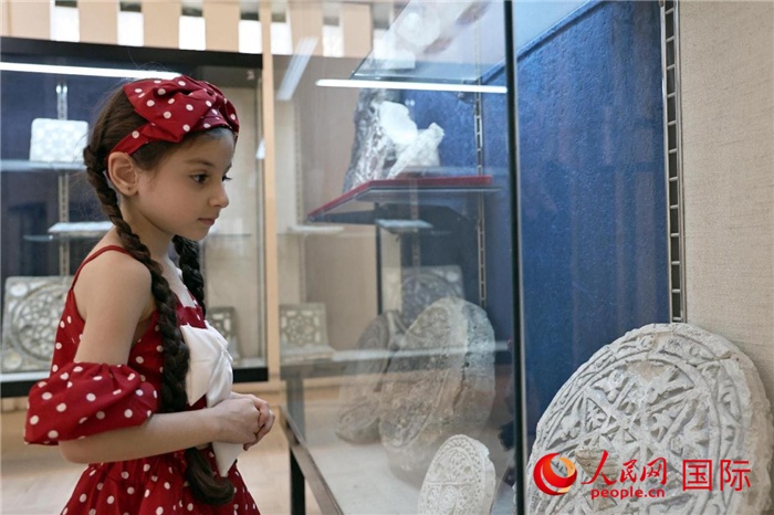 一名伊拉克兒童在觀賞文物。人民網(wǎng) 伊納斯·易卜拉欣攝