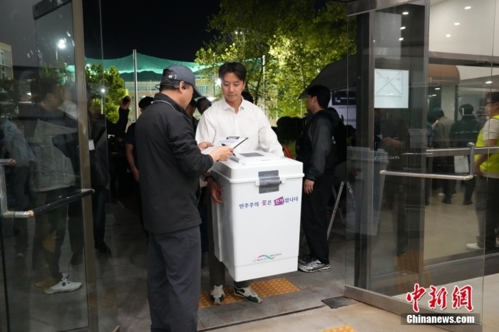 當(dāng)?shù)貢r(shí)間6月3日,工作人員將票箱送入韓國(guó)首爾一處計(jì)票站內(nèi)。韓國(guó)第21屆總統(tǒng)選舉投票于當(dāng)天20時(shí)結(jié)束,計(jì)票工作隨即陸續(xù)啟動(dòng)。中新社記者 劉旭 攝