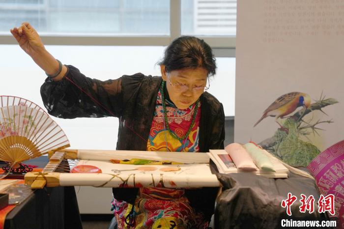 當(dāng)?shù)貢r(shí)間6月5日,湖北省非物質(zhì)文化遺產(chǎn)“大冶刺繡”亮相首爾國際旅游展。中新網(wǎng)記者 劉旭 攝