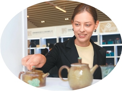 圖為近日,一名女子在匈牙利布達(dá)佩斯參觀中國非遺旅游文創(chuàng)展。新華社記者 彭子洋攝
