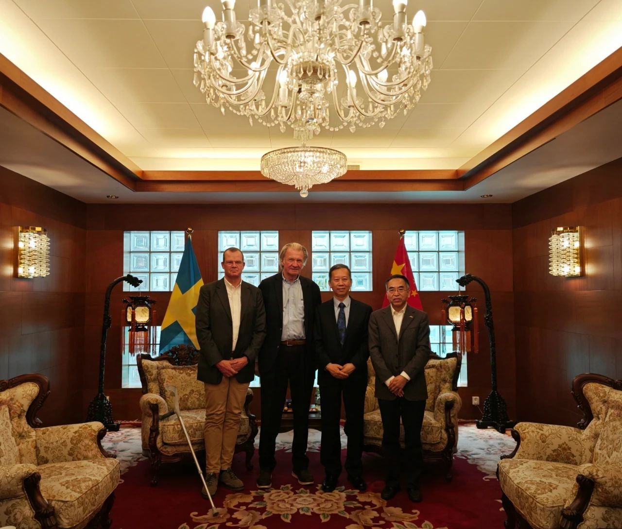 中國駐瑞典大使崔愛民會見北極光基金會董事維克曼。中國駐瑞典大使館供圖