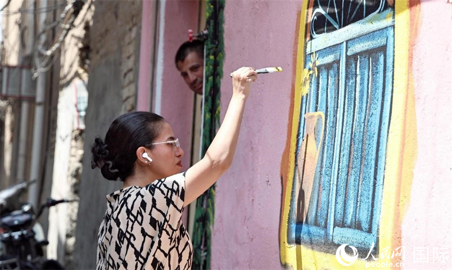 一名藝術(shù)家正在創(chuàng)作壁畫。人民網(wǎng) 伊納斯·易卜拉欣攝