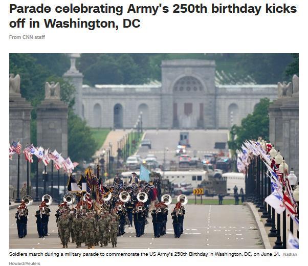美東時間6月14日,華盛頓特區(qū)天氣陰,雷暴預警讓慶典提前開始。這是美國政府時隔34年再次舉行閱兵式,旨在紀念美國陸軍成立250周年。