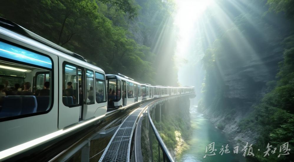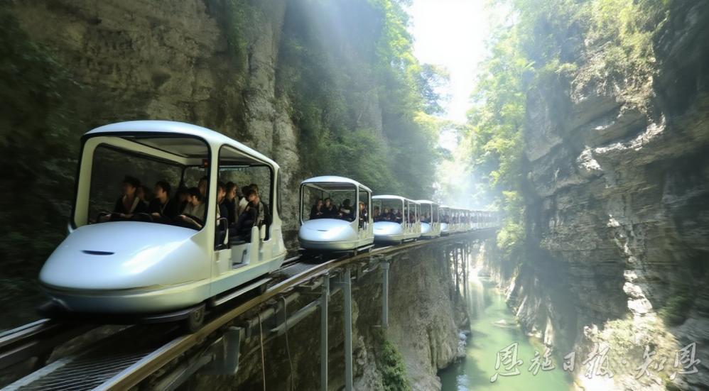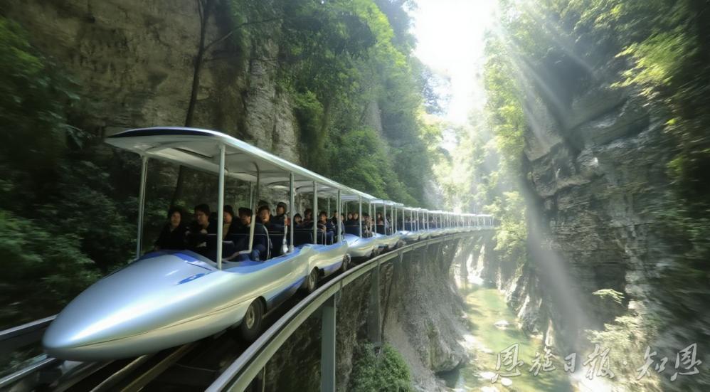 在過(guò)去,常規(guī)的步行棧道與纜車游覽方式,常使游客游覽路線受限,峽谷的諸多絕美之處被隱匿。地心谷敏銳捕捉到懸崖軌道車這一創(chuàng)新亮點(diǎn),著力打造恩施峽谷旅游首條崖壁軌道交通項(xiàng)目,讓13分鐘航程成為穿越地心世界的文明切片。
