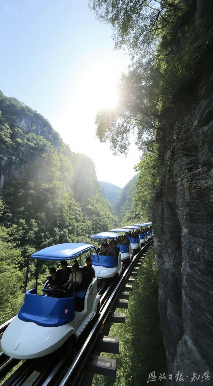 這是通向地球心臟的時(shí)光隧道——2400米的鋼鐵琴弦上,演奏出地質(zhì)紀(jì)元的交響詩(shī)。車窗成為天然IMAX銀幕,你將看到:飛瀑在腳下碎成鉆石雨,巖層紋路里凝固的遠(yuǎn)古海浪,突然從霧氣中探頭的彩虹… …200米落差奏響腎上腺素交響曲,軌道車以恰到好處的速度,讓每個(gè)轉(zhuǎn)彎都成為與石壁的驚鴻一吻。
