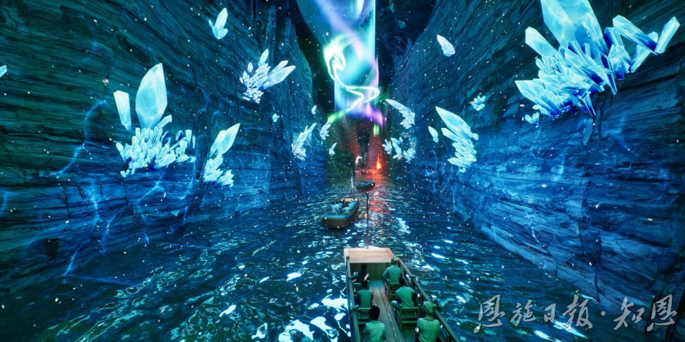 轉(zhuǎn)入“地心奇航”的幽藍(lán)水道,億萬(wàn)年前的時(shí)空裂隙在穹頂豁然展開,現(xiàn)實(shí)與幻境的邊界開始溶解。冰涼的霧氣拂過(guò)面頰,帶著冰河時(shí)代的清冽氣息,船身輕晃間,仿佛遠(yuǎn)古巨獸正在地心蘇醒,轉(zhuǎn)過(guò)一道彎,赤紅的光暈突然染紅水面,地心熔巖在巖壁上流淌,特效巨獸突然從巖壁躍出,激起的水花真實(shí)濺到臉上那一刻,每個(gè)人都成為地心探險(xiǎn)故事的主角。