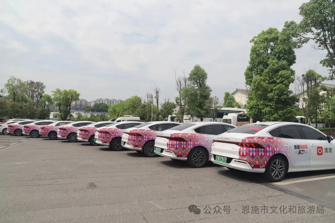本次活動是恩施市文化和旅游局與滴滴出行在文化傳播與旅游出行服務(wù)領(lǐng)域的一次創(chuàng)新嘗試。此次精心挑選了10輛滴滴車輛,以極具傳統(tǒng)民族特色的西蘭卡普為元素,為“恩施民俗彩蛋車”精心設(shè)計了“車身外衣”,以恩施各景點、標(biāo)志性建筑為原型制作的展示掛件裝飾其中。無論是色彩斑斕的車身外衣,還是富有地域代表性的景區(qū)剪影,都讓車輛在行駛過程中成為城市中一道亮麗的風(fēng)景線,吸引著眾多市民和游客的目光,并為游客增添旅途中的人文關(guān)懷和貼心服務(wù)。