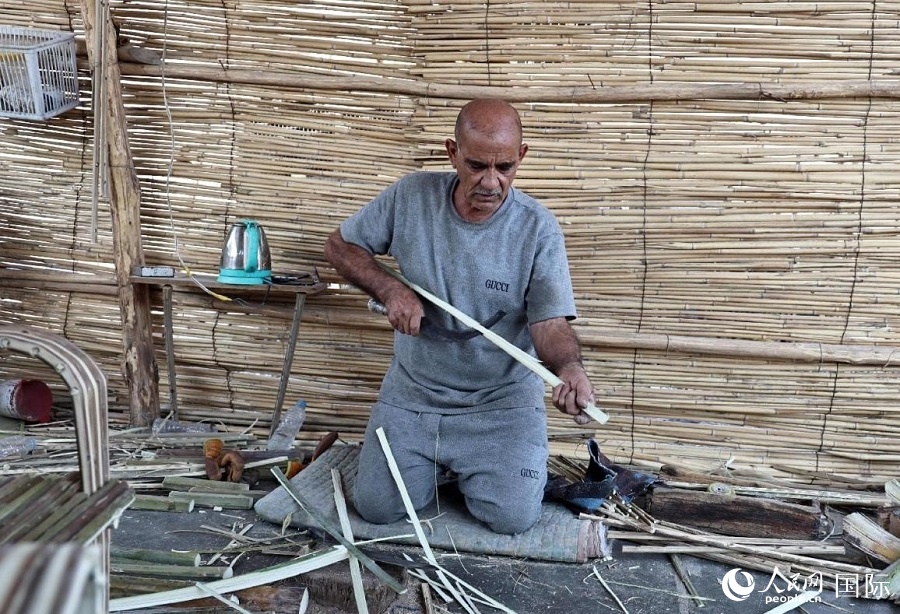 阿布·阿巴斯在制作椅子。人民網(wǎng) 伊納斯·易卜拉欣攝