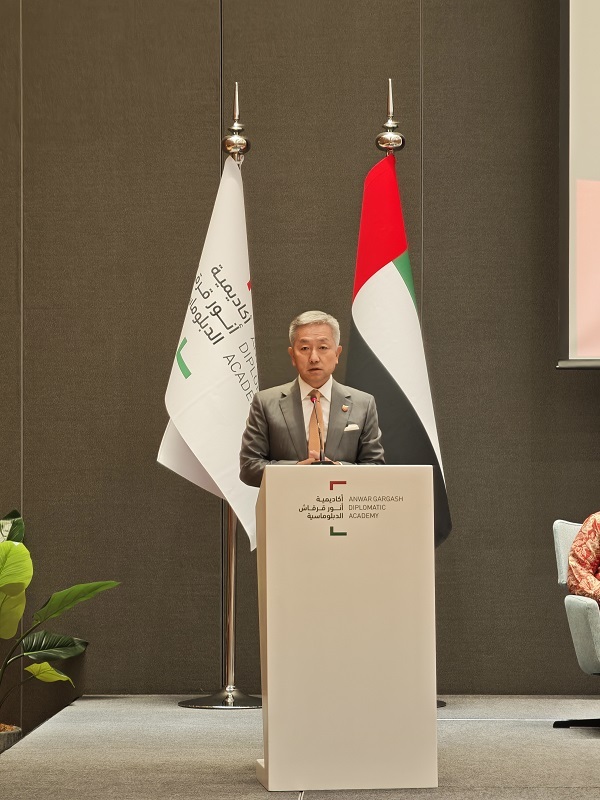 中國(guó)駐阿聯(lián)酋大使張益明致辭。中國(guó)駐阿聯(lián)酋大使館供圖