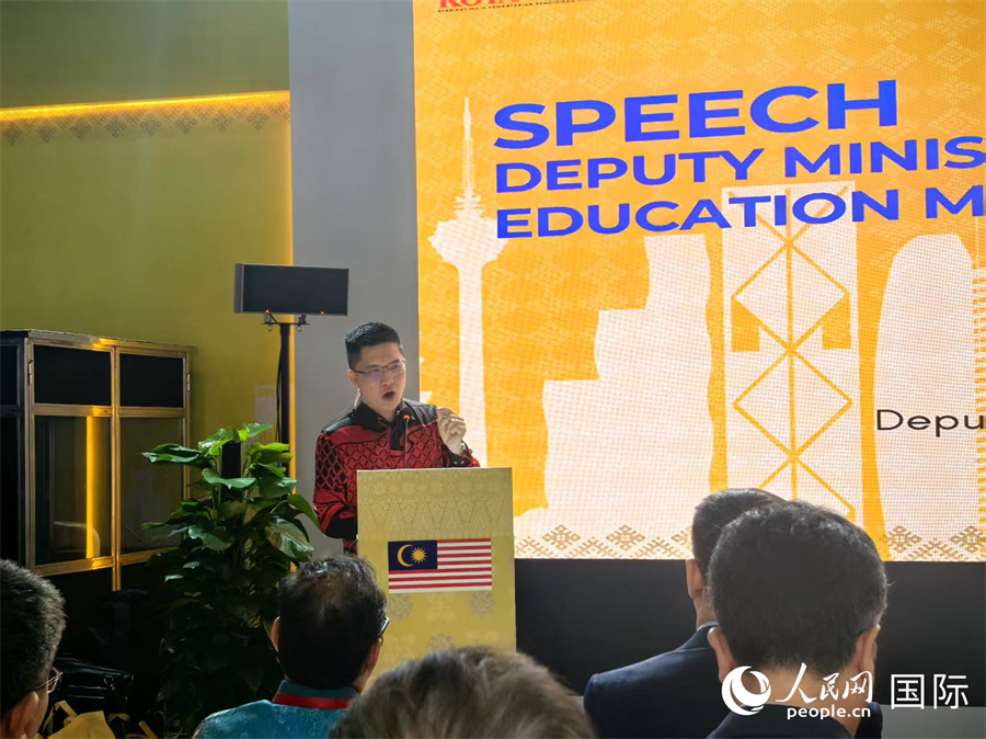 馬來西亞教育部副部長黃家和在馬來西亞館揭幕儀式上發(fā)表講話。人民網(wǎng) 楊春燕攝