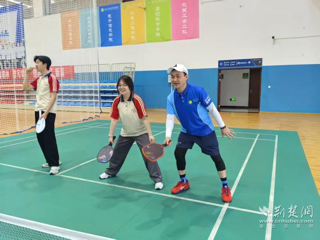 黃緯纮在宜昌三峽技術(shù)學院做師生匹克球推廣。通訊員供圖