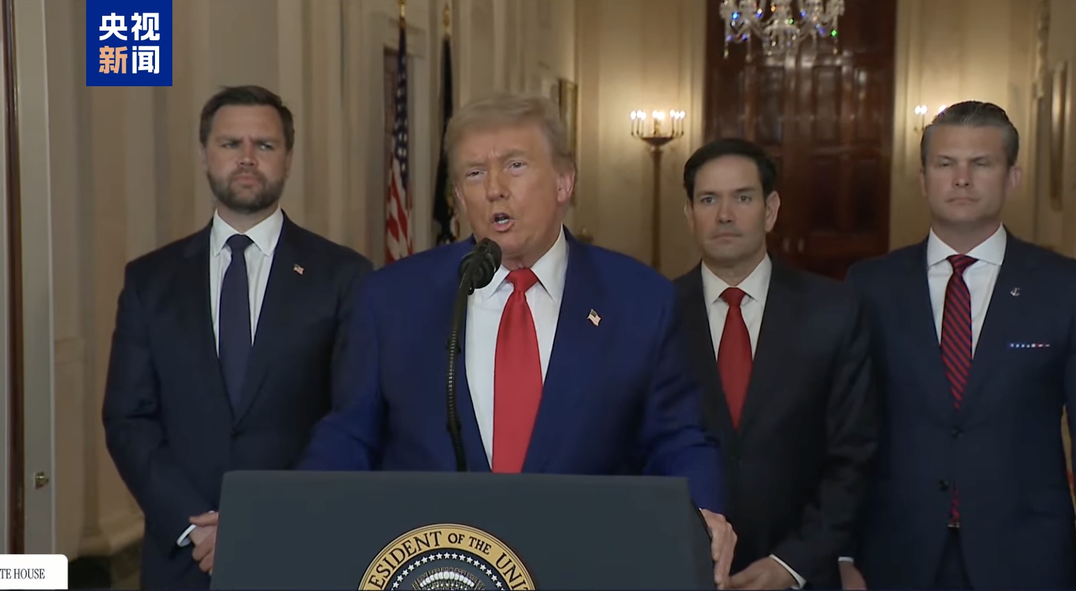 美國(guó)東部時(shí)間21日22時(shí),美國(guó)總統(tǒng)特朗普就襲擊伊朗核設(shè)施發(fā)表全國(guó)講話。特朗普稱,伊朗關(guān)鍵的核濃縮設(shè)施已被徹底摧毀。(總臺(tái)記者 張穎哲)