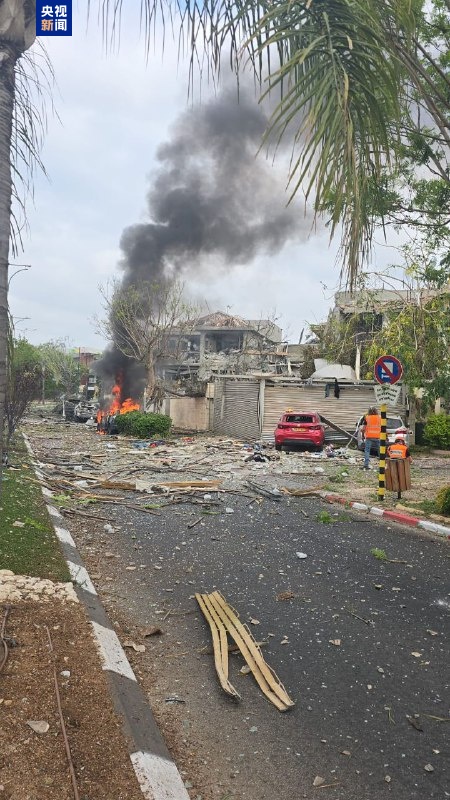 △以色列12頻道發(fā)布的圖片顯示,以中部謝菲拉等地多所建筑物在襲擊中受損