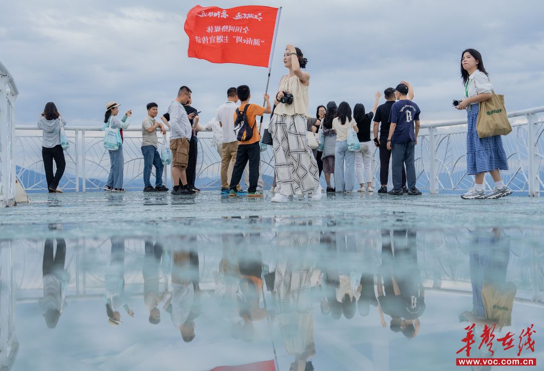 今日,“江湖不遠(yuǎn) 岳陽很近”——全國網(wǎng)絡(luò)媒體“湖南e周”主題宣傳活動采訪團(tuán)走進(jìn)平江石牛寨,感受碧空萬里、白云舒卷的景象,欣賞百里丹霞、十里絕壁上變幻的光影,領(lǐng)略山川毓秀、雄渾壯闊的絕美畫卷。
