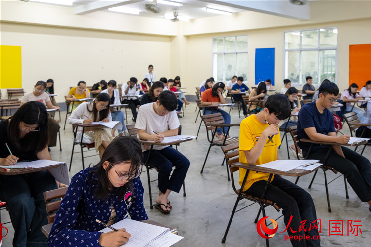 6月22日,當地學生在仰光大學參加漢語水平考試(HSK)。人民網記者 謝佳君攝