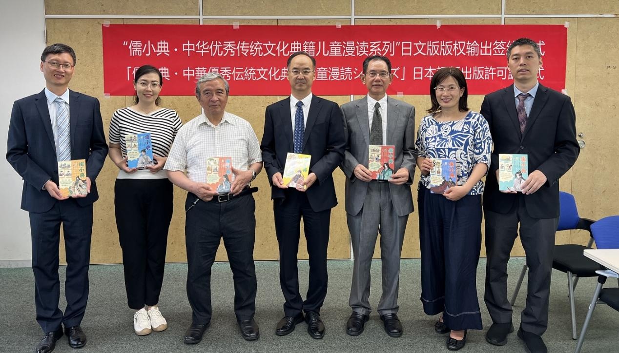 圖為參加《儒小典·中華優(yōu)秀傳統(tǒng)文化典籍兒童漫讀系列》日文版簽字儀式的部分嘉賓合影。日本僑報社提供