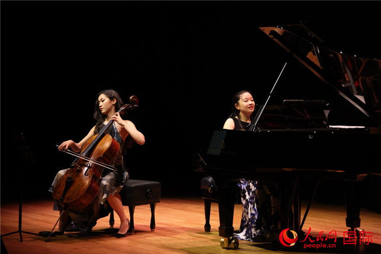 音樂會現(xiàn)場座無虛席。中國青年大提琴家李拉與鋼琴家黃秋寧合作演奏了《中國之詩》《七首中國小調(diào)》以及部分世界經(jīng)典曲目。為紀(jì)念中國人民抗日戰(zhàn)爭暨世界反法西斯戰(zhàn)爭勝利80周年,她們還特別帶來《黃河大合唱》選段《黃水謠》。