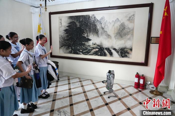 一走進使館大廳,一臺宇樹科技機器人便上前“作揖迎賓”,不少菲律賓青年一時愣住,隨后紛紛揮手回應(yīng)。“這太酷了!”中學生杰爾尼興奮地對同伴說。