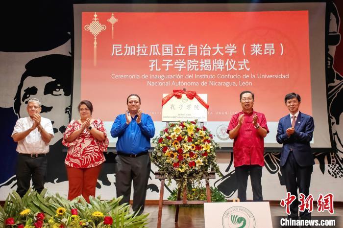 當(dāng)?shù)貢r(shí)間6月25日,尼加拉瓜國立自治大學(xué)萊昂孔子學(xué)院揭牌成立。云南師范大學(xué) 供圖