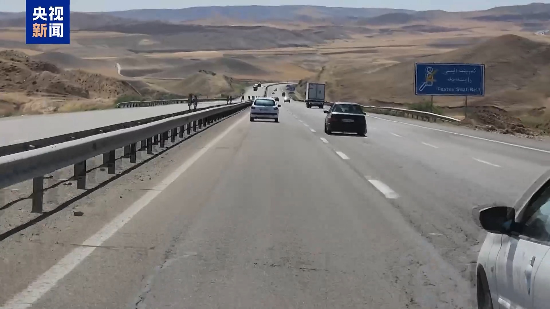 總臺(tái)記者 李健南:現(xiàn)在是當(dāng)?shù)貢r(shí)間26日的中午,我們正行駛在伊朗西北部地區(qū)一條最重要的高速公路上,這條高速公路連接的是伊朗首都德黑蘭到西北部城市大不里士,從大不里士繼續(xù)連接到伊朗的鄰國(guó)土耳其、亞美尼亞和阿塞拜疆。這條高速公路上車流量的多少,是可以判斷伊朗經(jīng)濟(jì)活動(dòng)活躍程度的一個(gè)指標(biāo)。