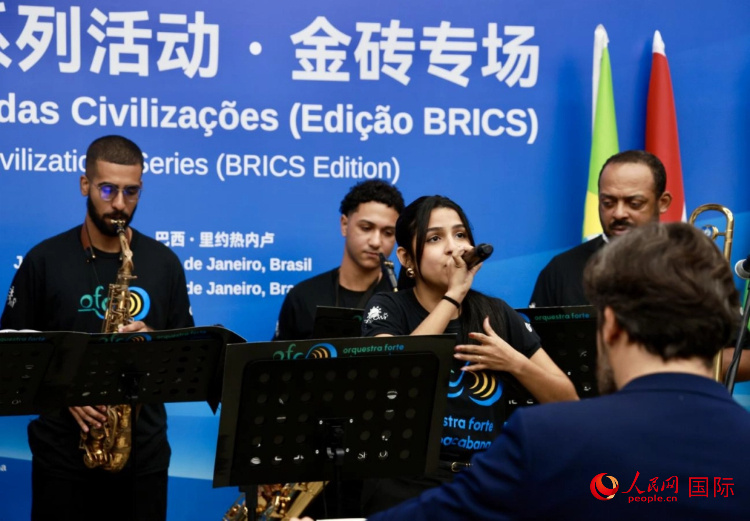在里約熱內(nèi)盧科帕卡巴納要塞樂(lè)團(tuán)帶來(lái)的金磚國(guó)家流行歌曲聯(lián)奏中,活動(dòng)拉開帷幕。來(lái)自金磚國(guó)家的多位體育冠軍、企業(yè)代表、青年人才等嘉賓,結(jié)合個(gè)人經(jīng)歷講述金磚國(guó)家人民通過(guò)砥礪奮進(jìn)與團(tuán)結(jié)協(xié)作,共同追求發(fā)展繁榮的動(dòng)人故事,生動(dòng)展現(xiàn)了全球南方合作的廣闊圖景,彰顯了推動(dòng)人類文明進(jìn)步的“金磚力量”。由于資金嚴(yán)重短缺,由里約貧困青少年組成的科帕卡巴納要塞樂(lè)團(tuán)一度瀕臨解散,得益于在巴中資企業(yè)及時(shí)提供寶貴援手,樂(lè)團(tuán)不僅獲得重生,還被列入里約州非物質(zhì)文化遺產(chǎn)名錄。當(dāng)樂(lè)團(tuán)藝術(shù)總監(jiān)瑪西婭·梅爾基奧爾講述用音樂(lè)拉近兩國(guó)人民心靈距離的故事時(shí),激動(dòng)得幾度哽咽。