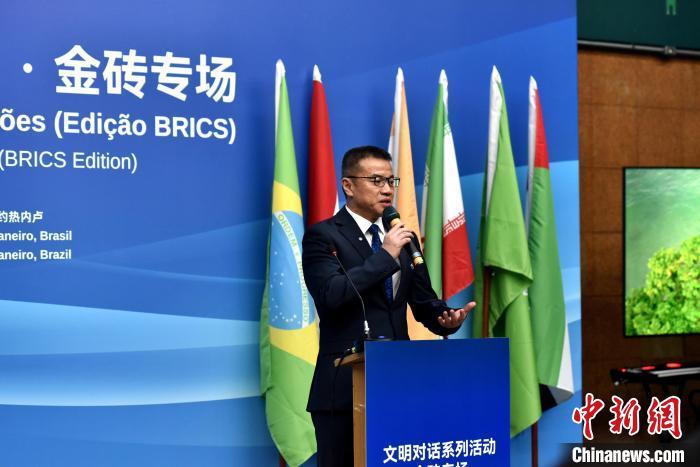 當(dāng)?shù)貢r(shí)間6月27日,文明對(duì)話系列活動(dòng)(金磚專場(chǎng))在巴西里約熱內(nèi)盧舉行。中國海油巴西公司總經(jīng)理黃業(yè)華在金磚國家友好故事會(huì)上演講。中新社記者 林春茵 攝