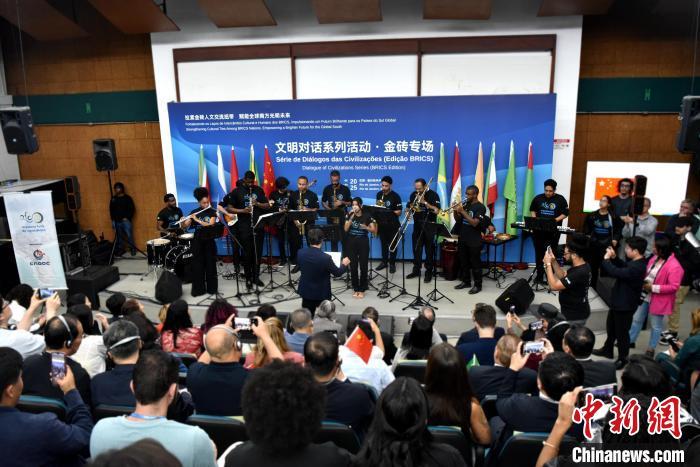 當(dāng)?shù)貢r(shí)間6月27日,文明對(duì)話系列活動(dòng)(金磚專場(chǎng))在巴西里約熱內(nèi)盧舉行。中企資助的巴西科帕卡巴納要塞管弦樂團(tuán)進(jìn)行開幕演出。中新社記者 林春茵 攝