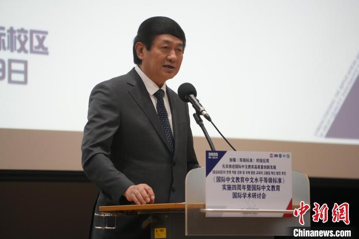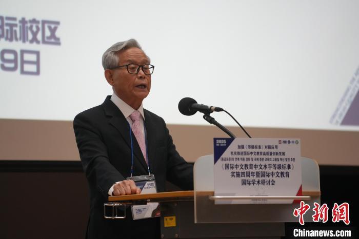 6月28日,《國際中文教育中文水平等級(jí)標(biāo)準(zhǔn)》實(shí)施四周年國際學(xué)術(shù)會(huì)議在韓國仁川開幕。圖為世界漢語教學(xué)學(xué)會(huì)會(huì)長鐘英華作主旨發(fā)言。中新網(wǎng)記者 劉旭 攝