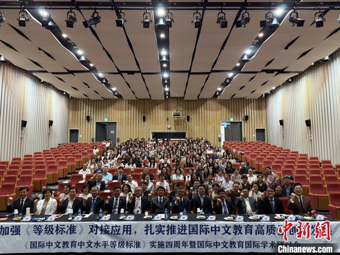 6月28日,《國際中文教育中文水平等級(jí)標(biāo)準(zhǔn)》實(shí)施四周年國際學(xué)術(shù)會(huì)議在韓國仁川開幕。圖為會(huì)議現(xiàn)場合影。中新網(wǎng)記者 劉旭 攝