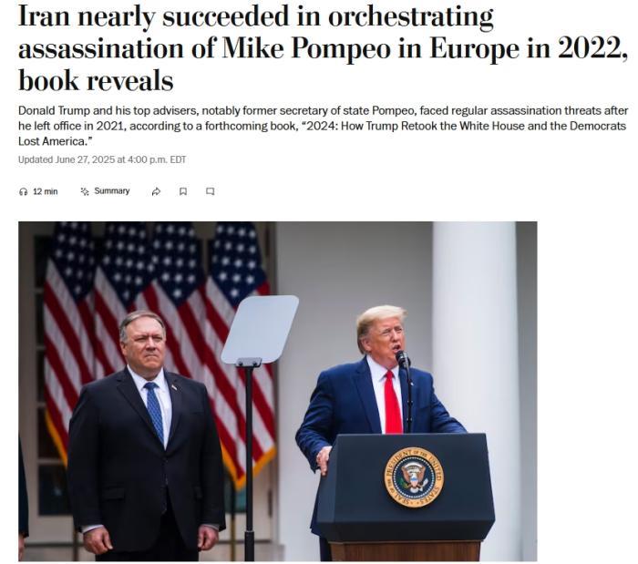 據(jù)報(bào)道,這本名為《2024:特朗普如何重新奪回白宮以及民主黨如何失去美國》的新書計(jì)劃在7月出版,其中披露了在2022年,伊朗幾乎成功地在歐洲一家酒店暗殺蓬佩奧。