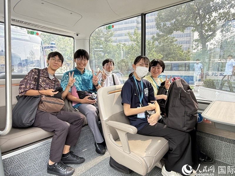 沖繩大學(xué)生訪(fǎng)華團(tuán)試乘無(wú)人駕駛小巴。人民網(wǎng)記者 陳思攝