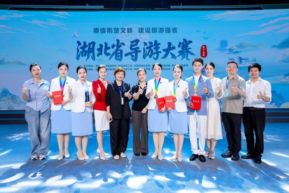在長江經(jīng)濟(jì)帶高質(zhì)量發(fā)展與中部地區(qū)崛起戰(zhàn)略深入推進(jìn)的關(guān)鍵節(jié)點(diǎn),湖北省第十五屆導(dǎo)游大賽于6月24日至28日在荊州市圓滿舉辦。這場以“賡續(xù)荊楚文脈?建設(shè)旅游強(qiáng)省”為主題的行業(yè)盛會(huì),不僅是湖北導(dǎo)游人才的巔峰對(duì)決,更是全省文旅產(chǎn)業(yè)對(duì)標(biāo)國家戰(zhàn)略、邁向國際一流的重要實(shí)踐,為建設(shè)世界知名文化旅游目的地注入強(qiáng)勁動(dòng)力。經(jīng)過4天激烈對(duì)決,武漢代表隊(duì)張玲、荊州代表隊(duì)曹寰蓓、十堰選手張凡榮獲湖北省第十五屆導(dǎo)游大賽金獎(jiǎng)。武漢市代表隊(duì)張玲獲得本屆導(dǎo)游大賽最佳講解獎(jiǎng)、最佳創(chuàng)作獎(jiǎng),黃岡市代表隊(duì)楊歡獲得本屆導(dǎo)游大賽最佳服務(wù)獎(jiǎng),宜昌市代表隊(duì)鄭芙蓉獲得本屆導(dǎo)游大賽最佳風(fēng)采獎(jiǎng)。