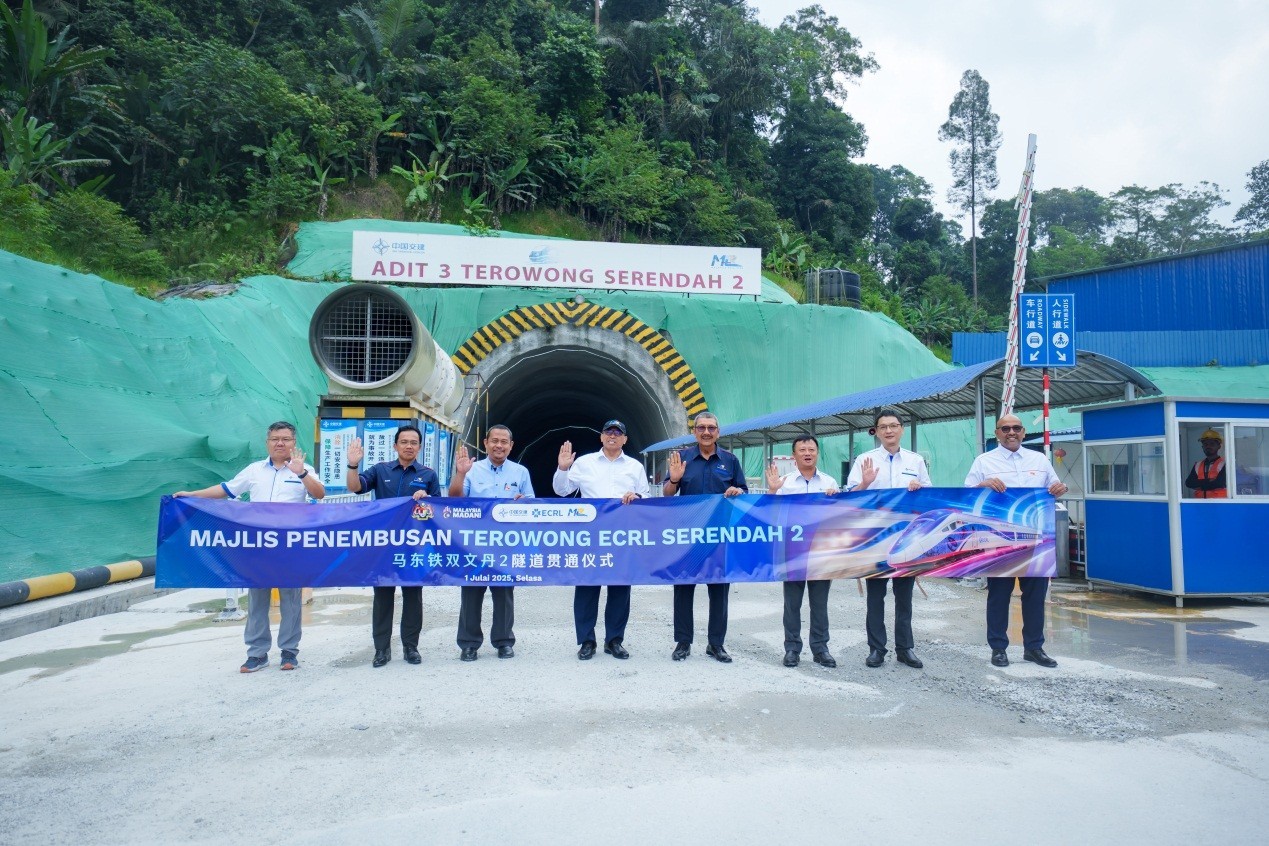 馬來西亞東海岸鐵路(馬東鐵)項目雙文丹2號隧道貫通儀式舉行。中交馬東鐵項目總經(jīng)理部供圖