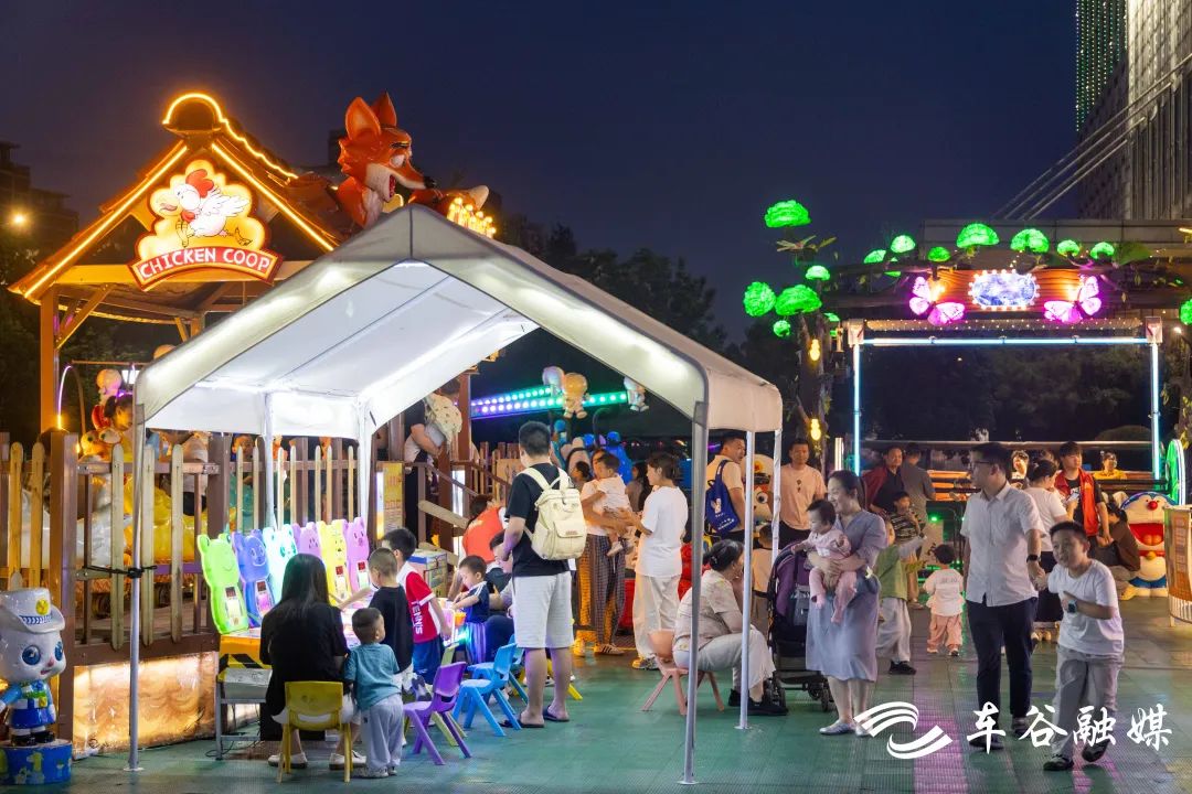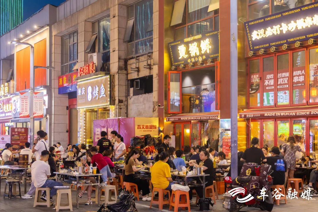 網(wǎng)紅集裝箱集市上,人們?nèi)宄扇海峙跄滩?,聊天、散步,打工人迎來一天中最松弛的時(shí)刻。不遠(yuǎn)處,兒童樂園傳來陣陣歡笑,快樂氣球屋、小雞快跑是孩子們的最愛。萬達(dá)金街上,烤串、麻辣燙飄香,耳邊傳來“走,去擼串!”“快來,吃油燜大蝦!”