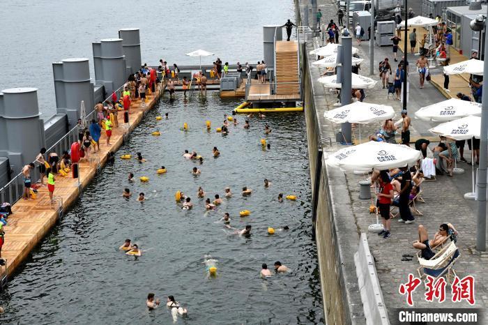 當?shù)貢r間7月5日,法國巴黎時隔百余年恢復開放塞納河公眾游泳。圖為民眾在河中一處對外開放的公共區(qū)域內(nèi)游泳。中新社記者 李洋 攝