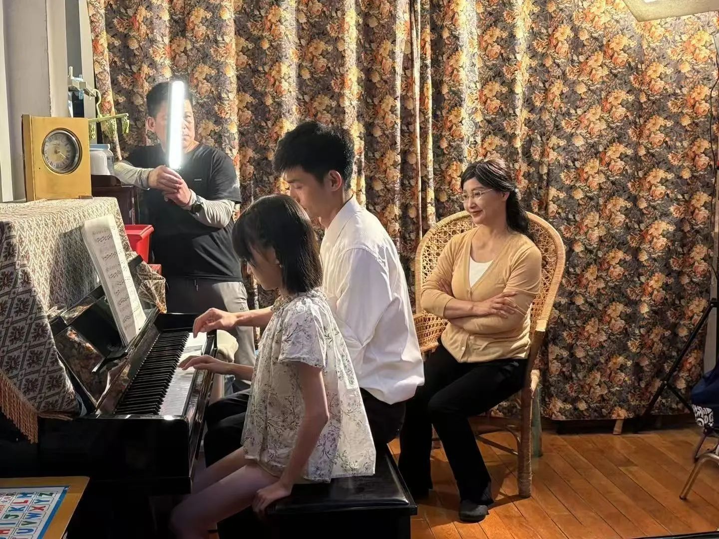 在拍攝過(guò)程中,導(dǎo)演巧妙運(yùn)用竹床、鋼琴等意象,展現(xiàn)時(shí)光流轉(zhuǎn)中的情感延續(xù)。童年時(shí),孩子在竹床上聽(tīng)家家講故事;成年后,竹床雖已老舊,那份溫暖的回憶卻從未褪色。鋼琴?gòu)募壹沂掷L的紙板鍵盤(pán),到舞臺(tái)上的流光溢彩,展現(xiàn)著時(shí)代變遷與夢(mèng)想延續(xù)。為了讓方言既能保留韻味,又能被非武漢觀眾理解,創(chuàng)作團(tuán)隊(duì)在念白、對(duì)話與歌詞的設(shè)計(jì)上花費(fèi)了大量心思,反復(fù)打磨每一句臺(tái)詞,最終找到了最佳平衡點(diǎn)。