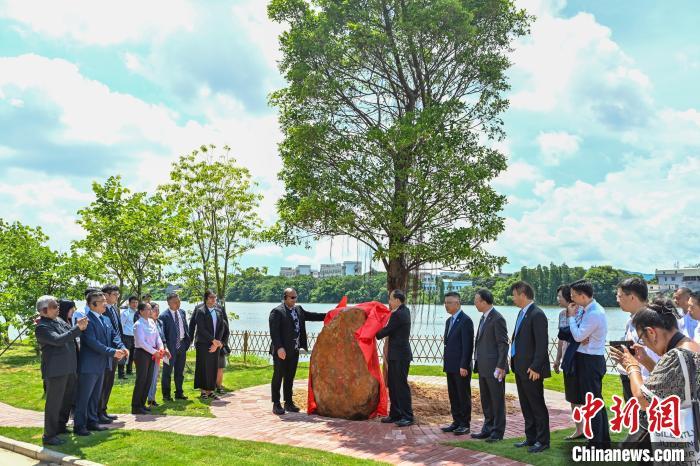 7月8日,廣東江門,瑙魯總統(tǒng)戴維·阿迪昂親手植下一棵象征家族根脈的榕樹。中新社記者 陳驥旻 攝