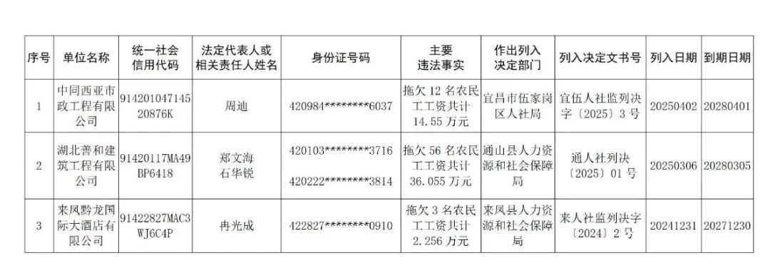 為進(jìn)一步加大對重大勞動保障違法行為的懲戒力度,強化社會輿論監(jiān)督,維護(hù)勞動者合法權(quán)益,根據(jù)《重大勞動保障違法行為社會公布辦法》(人力資源和社會保障部令第29號)和《拖欠農(nóng)民工工資失信聯(lián)合懲戒對象名單管理暫行辦法》(人力資源和社會保障部令第45號),現(xiàn)向社會公布2025年第二批重大勞動保障違法行為案件及拖欠農(nóng)民工工資失信聯(lián)合懲戒對象名單。
