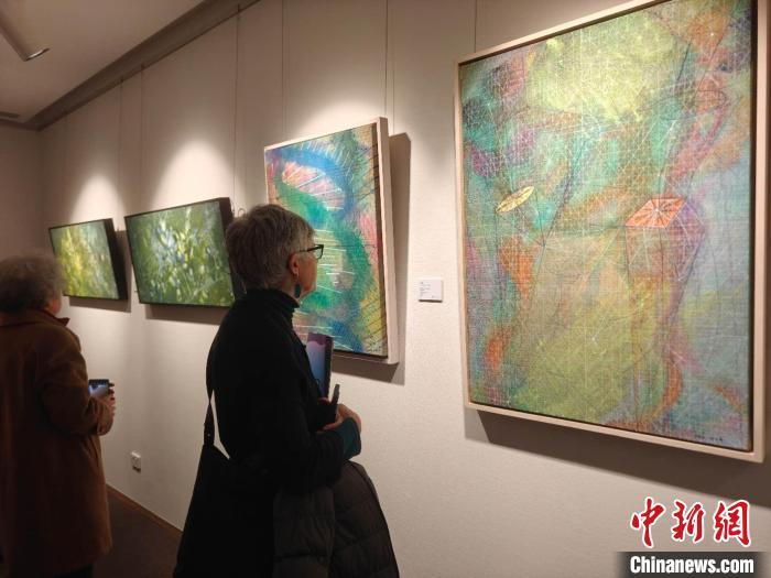 當(dāng)?shù)貢r(shí)間7月10日晚,悉尼市民欣賞在悉尼中國文化中心開幕的“新視角-中國青年藝術(shù)交流展”?!?悉尼中國文化中心 供圖)