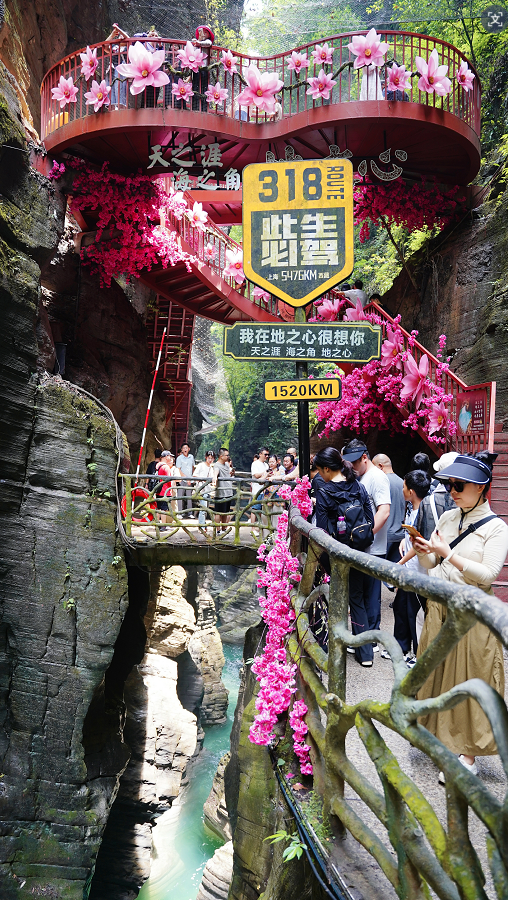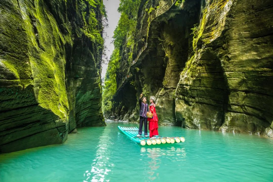 漫步景區(qū),地心天塹的“險”、地心奇觀的“奇”、地心洞天的“野”和巴鹽古道的“古”依次展現(xiàn)。心形深潭“地之心”如同一顆碧綠的翡翠,浪漫氛圍拉滿。