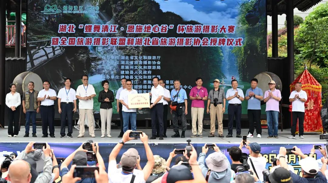 7月8日,湖北“蝶舞清江?恩施地心谷”杯旅游攝影大賽啟動儀式暨全國旅游攝影協(xié)會聯(lián)盟和湖北省旅游攝影協(xié)會基地授牌宣傳推廣活動在恩施地心谷景區(qū)隆重舉行。
