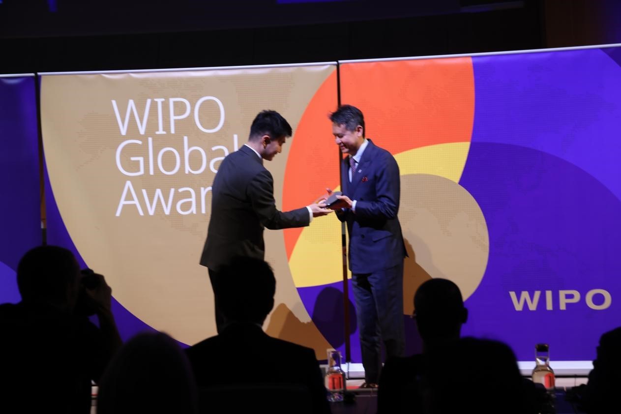 世界知識(shí)產(chǎn)權(quán)組織總干事鄧鴻森向宇樹科技代表頒獎(jiǎng)。人民網(wǎng)記者 劉仲華攝