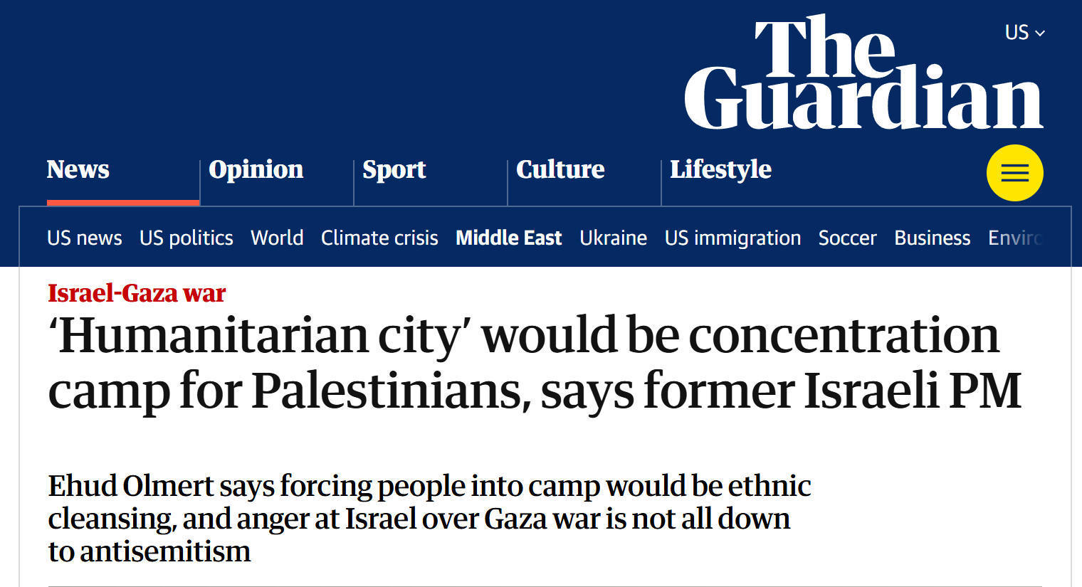 奧爾默特還表示,如果這一計(jì)劃實(shí)施,這些巴勒斯坦人將被驅(qū)逐到這個(gè)“人道主義城”,而這就是種族清洗。