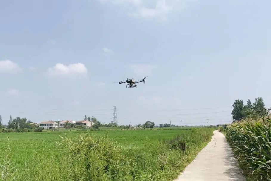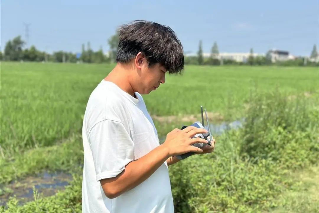 “混合肥料包含水稻專用肥、微量元素水溶肥以及磷酸二氫鉀,按科學(xué)比例調(diào)配。施肥過程中,無人機(jī)的參數(shù)設(shè)置通常為高度3米、噴幅6米、飛行速度每秒13.8米?!碧照芩闫稹靶寿~”,“無人機(jī)作業(yè)8小時,就能完成500畝的施肥,相比人工作業(yè),效率大幅提升?!?/p>